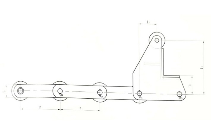 平板輸送機的鏈條,由帶K型附件的滾子套筒鏈和方管鋼組成,該鏈條在負載運行時,滾子和鏈條導(dǎo)軌之間是滾動兼滑動的摩擦運動形式。